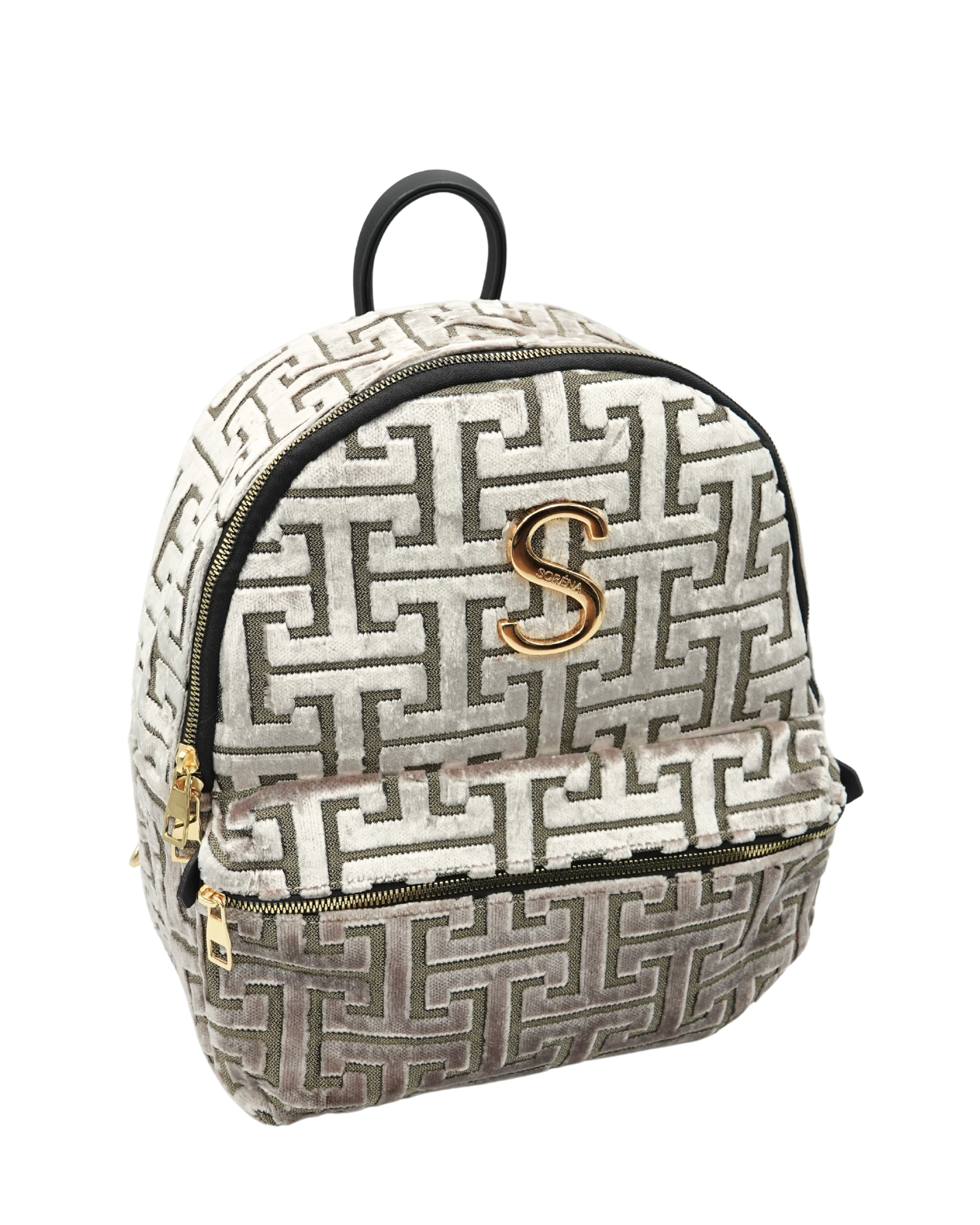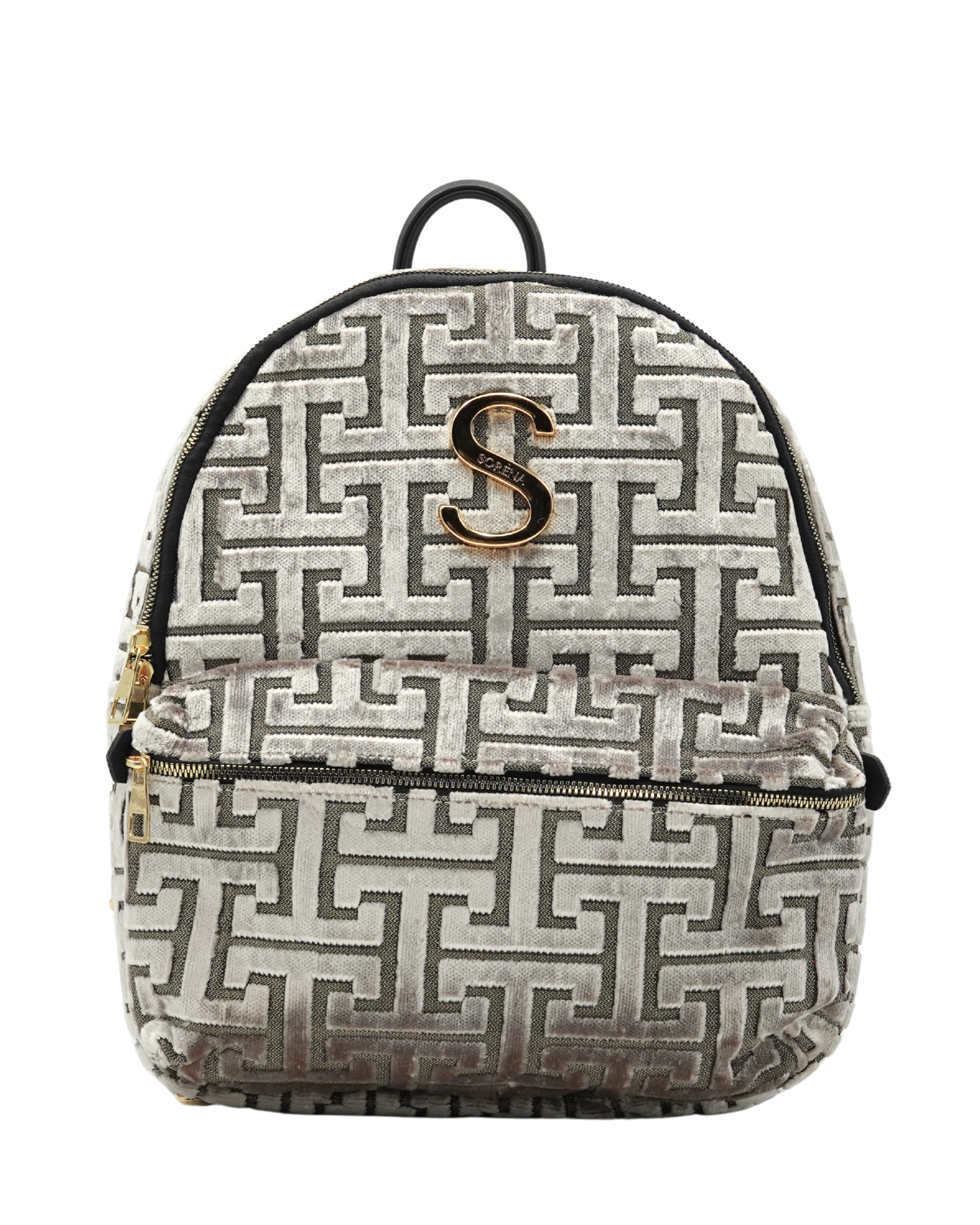 Lo zaino DAPHNE di Sorena Greece unisce l'artigianato tradizionale al design moderno, trasformando un oggetto di uso quotidiano in un vero e proprio elemento di stile. L'elegante motivo geometrico grigio e argento aggiunge profondità e struttura allo zaino, mentre la "S" dorata sul davanti rappresenta il marchio Sorena e aggiunge un tocco esclusivo.