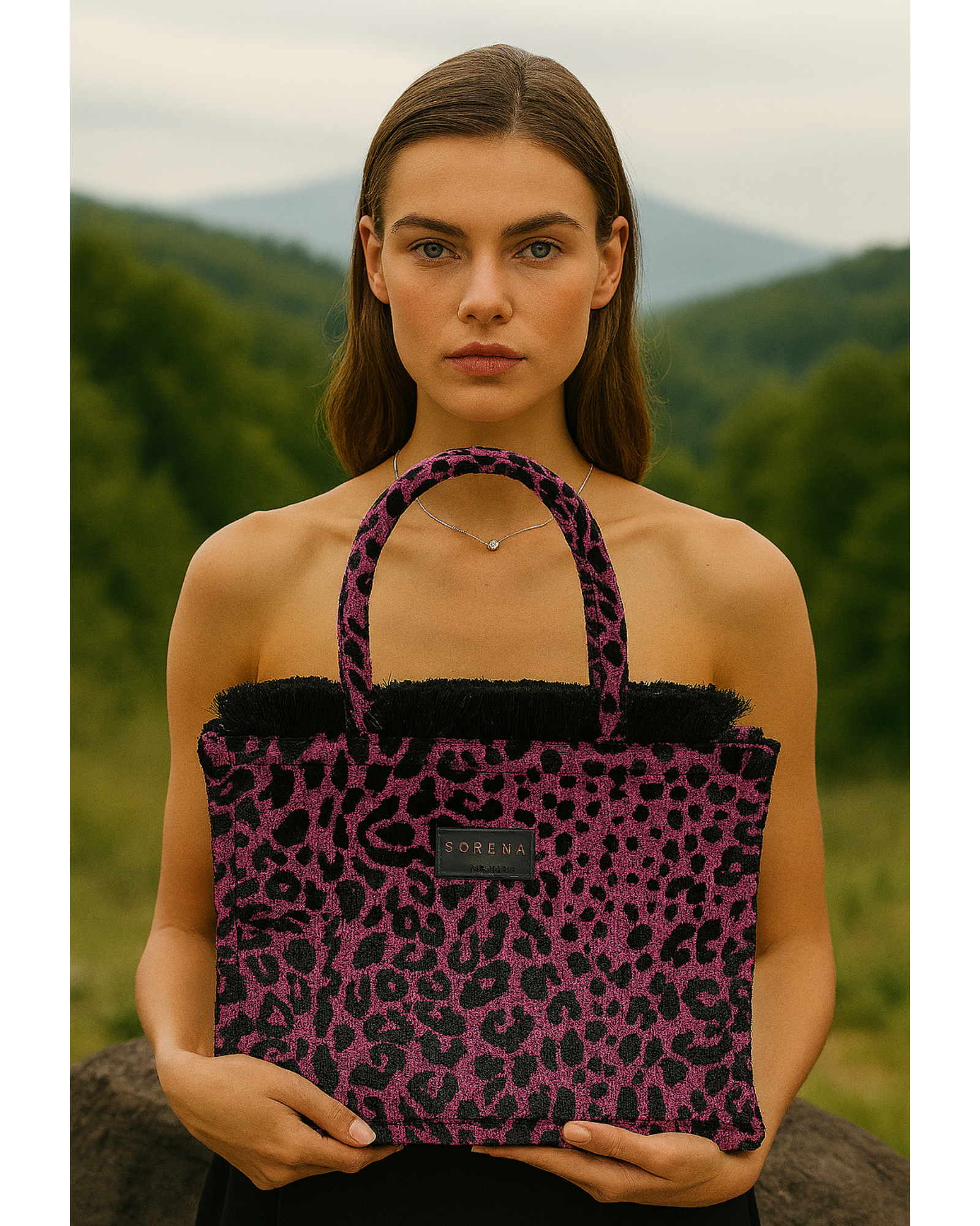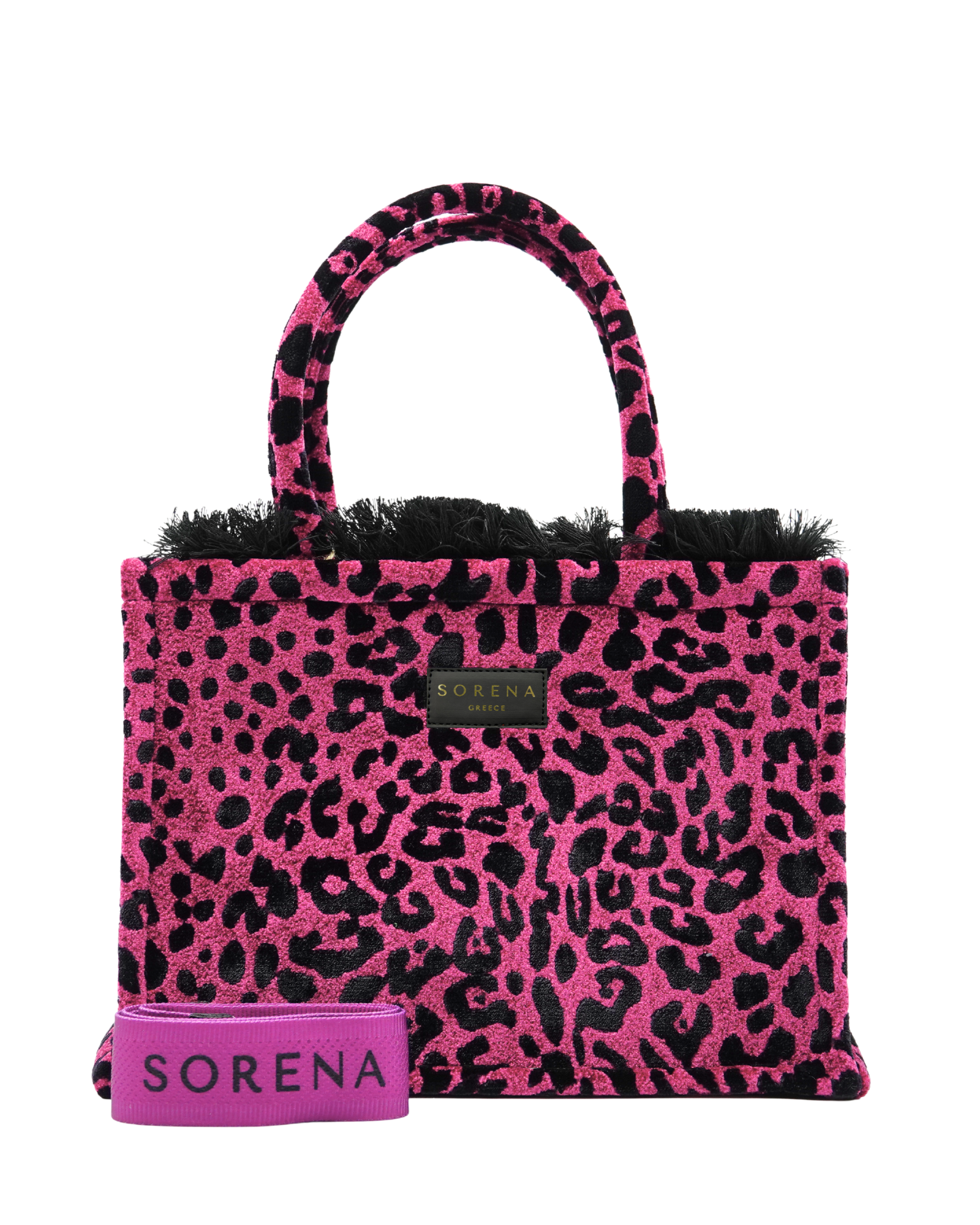Concedetevi il lusso di essere selvaggi con la borsa tote LEOPARD VELVET MAGENTA di Sorena Greece. Scopritela subito e distinguetevi.