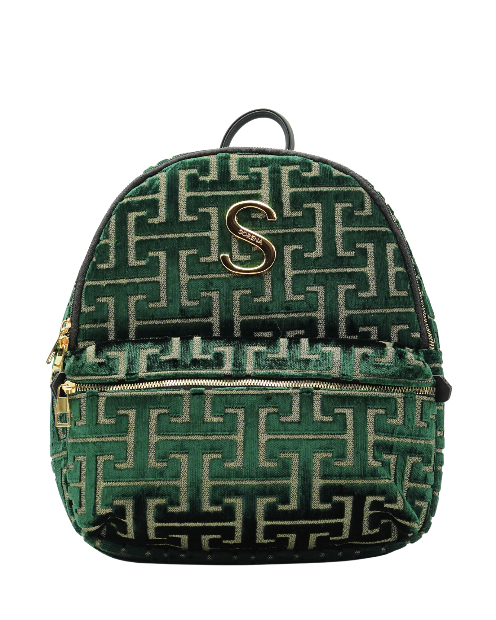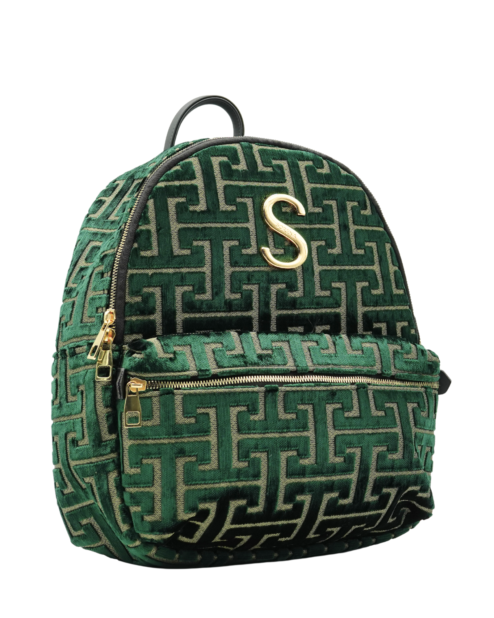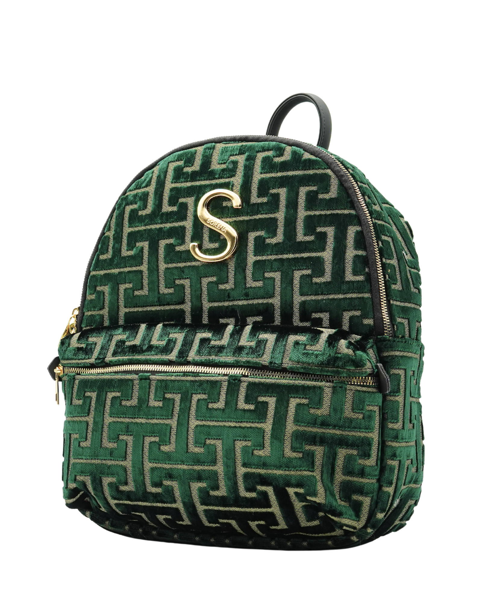 Il sorprendente motivo verde con elementi geometrici cattura l'attenzione, mentre l'emblema dorato "S" sul davanti aggiunge un tocco lussuoso. La combinazione di colore, struttura e materiali di alta qualità rende NAFSIKA la compagna perfetta per le donne che vogliono affrontare la vita di tutti i giorni con stile.