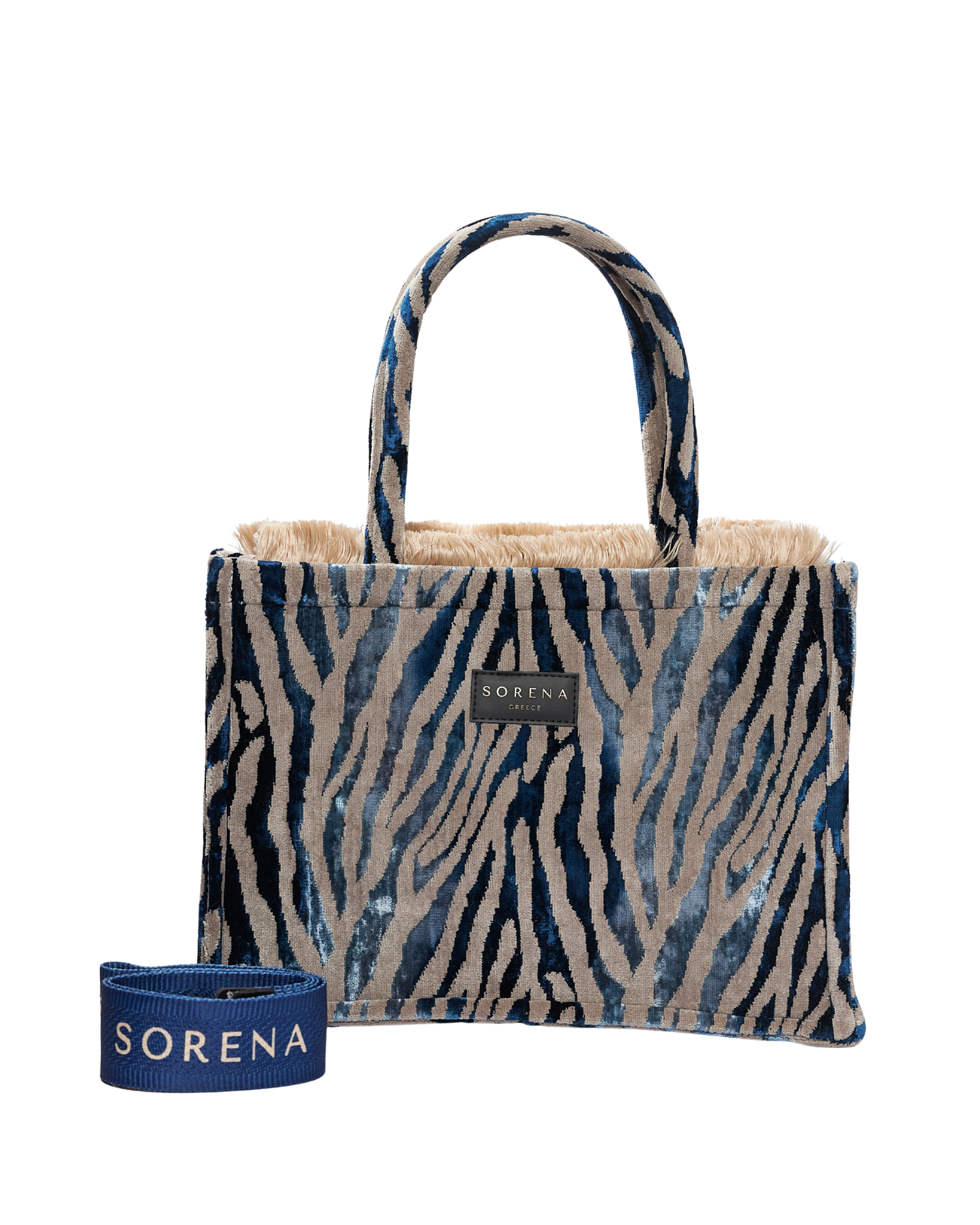 La borsa tote media OCEAN, realizzata a mano da Sorena Greece, è un vero gioiello per le donne che amano stile, audacia e individualità. Con la sua stampa zebrata blu e beige, il materiale morbido e la tracolla staccabile, OCEAN porta l'artigianalità greca e la moderna selvatichezza nella tua vita quotidiana: potente, morbida e distintiva.