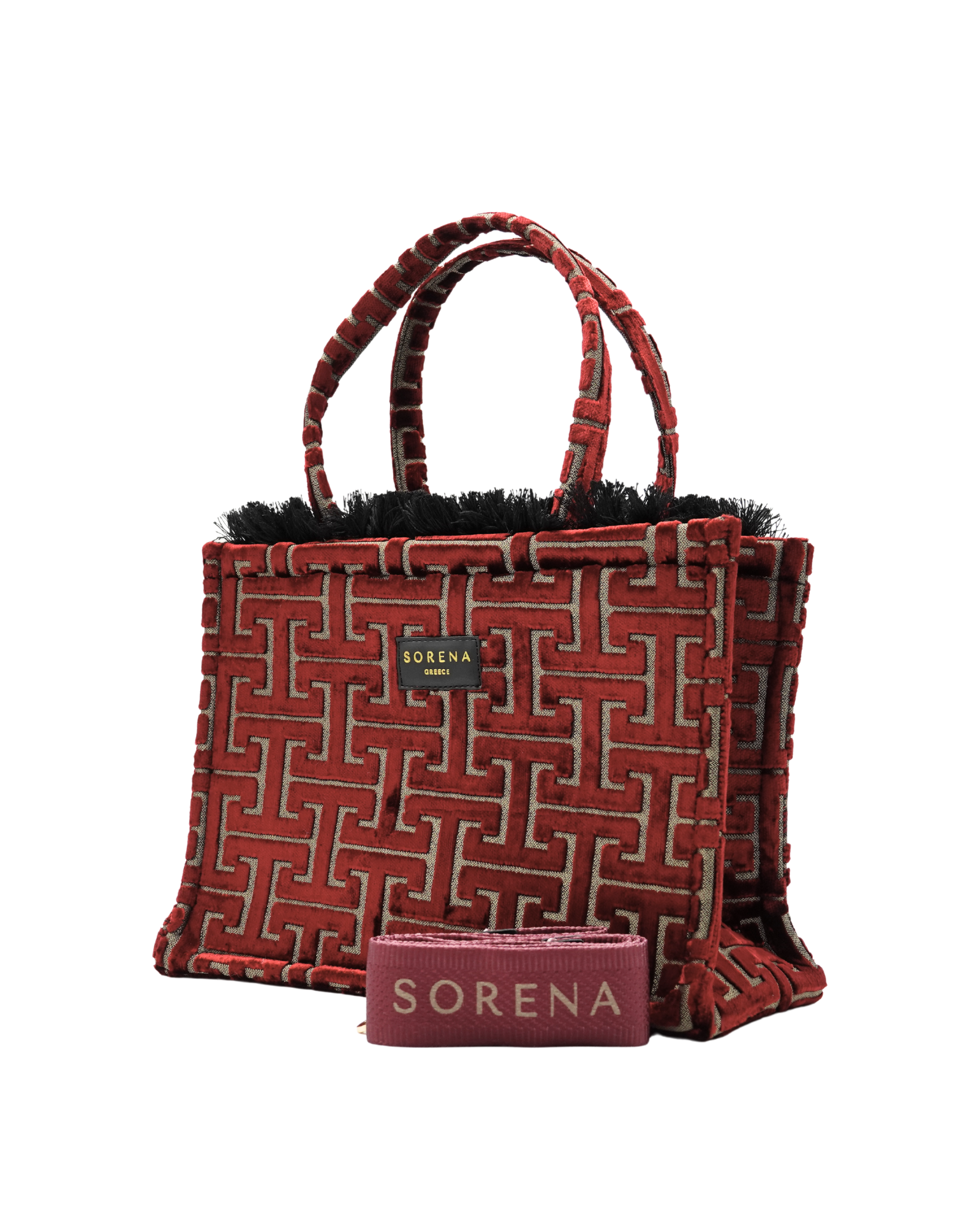 Die FILOMENI Tote Bag von SORENA GREECE ist ein echtes Statement-Piece für die kühle Jahreszeit. Ihr markantes geometrisches Muster in tiefem Rot und elegantem Schwarz erinnert an herbstlich gefärbte Blätter, dunkle Beeren und die kraftvolle Ruhe von Novembertagen. Diese Farbkombination verleiht der Tasche eine starke, selbstbewusste Ausstrahlung – perfekt für Frauen, die mit Stil durch den Herbst gehen.